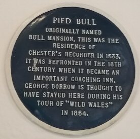 Although Borrow doesn’t name the inn, it’s been established that it was the Pied Bull Inn, now the oldest coaching inn in Chester: it’s even got a blue plaque today to commemorate Borrow’s visit: