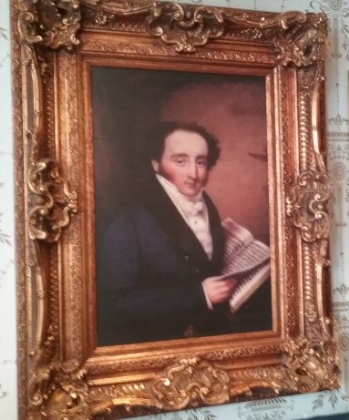 The George Borrow Society have had a number of very pleasant meals in the upper room at the Golden Lion, and each time there’s a discussion about the portraits that are on display. You’ll see one of them above: the person is holding a scroll with music on it and Hallelujah is written on it, so we think it’s a picture of Felix Mendelssohn. Here’s a closer photograph if you’re interested: