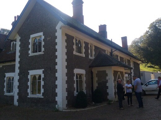 Back on the coach we travelled through Cromer and arrived at Northrepps cottage where Anna Gurney lived, whom Borrow visited there on the 29th April 1856 as we could see in the notebook. The original cottage has been greatly expanded since Anna’s days and is now a very attractive country hotel, still owned by the Gurney family. Inside there are sketches by various Gurneys of the cottage as it was and also the painting of Elizabeth Fry reading the Bible in Newgate: the picture that used to appear on the £5 note. [Elizabeth Fry was born Elizabeth Gurney.]